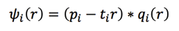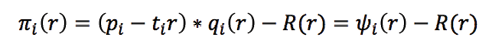 Los beneficios estarán dados por la diferencia de los ingresos que perciba de su actividad, la renta ofertada en una situación de indiferencia frente a los costos de transporte por una localización r y la renta del suelo de equilibrio. Es decir, todo beneficio positivo, derivado de una localización, será filtrado por el propietario del suelo, como lo señalan las siguientes ecuaciones: