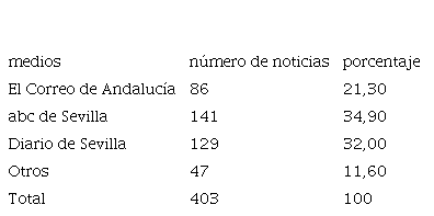 Se han seleccionado los periódicos Diario de Sevilla, abc de Sevilla y El Correo de Andalucía por su larga trayectoria y consolidación local. De ideología conservadora y localista, estos diarios son vendidos en quioscos y pueden hallarse fácilmente en bares, restaurantes, peluquerías y otros establecimientos, donde son leídos libremente por los clientes.2 Además, las ediciones electrónicas de los tres rotativos son muy consultadas y es frecuente que las noticias y artículos de opinión más relevantes se reboten en las redes sociales, multiplicando de este modo su repercusión social. Complementariamente, se han estudiado las páginas web de las entidades promotoras, así como noticias aparecidas en algunos de los periódicos internacionales más relevantes (The Guardian, Le Figaro, The Washington Post, Zeit, entre otros).