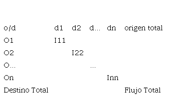 La herramienta básica para determinar la procedencia y destino de los migrantes internos por municipios en un periodo determinado es la matriz de origen-destino, la cual se construye con la pregunta del municipio de residencia cinco años atrás, lo que permite determinar los municipios en los que vivían las personas cinco años atrás y el municipio en que residen al momento del levantamiento del censo o encuesta. La diagonal principal de la matriz (I) corresponde a la población municipal que no ha migrado en el periodo (Tabla 1).