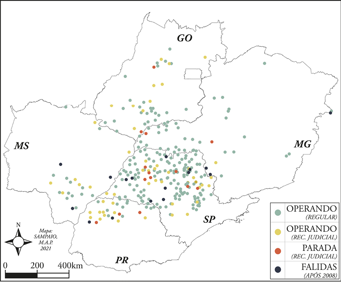 As implicações territoriais do que hoje chamamos por setor sucroenergético, se tornaram mais evidentes, contudo, após a segunda década do século xxi, momento em que enfrenta uma de suas maiores crises (Gilio & Castro, 2016; Santos & Castillo, 2020; Santos et al., 2015; Santos et al., 2016). Embora crises não sejam uma novidade no setor (Moraes & Bacchi, 2014; Sampaio, 2015), a atual tem peculiar magnitude econômica. Desde 2010, mais de 100 Unidades Agroindustriais Sucroenergéticas (uass) entraram com pedido de recuperação judicial ou faliram, ocasionando, em muitos casos, o encerramento temporário ou permanente de suas operações.