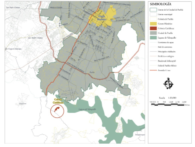 La colonia Cuitláhuac es un asentamiento irregular de aproximadamente 16,5 hectáreas, ubicado al surponiente de la Zona Metropolitana Puebla-Tlaxcala (Figura 1), y que en la actualidad cuenta con 400 habitantes, aproximadamente. Tiene su origen en 2010, cuando la organización Antorcha Campesina negoció la compra de los terrenos con los líderes del municipio de San Andrés Azumiatla,3 al cual pertenecían. Al ser un asentamiento irregular y encontrarse en los límites del municipio de Puebla, Cuitláhuac no ha sido reconocida ni por el municipio de Puebla, ni por el de San Andrés Azumiatla, a pesar de pertenecer al padrón electoral de este último. Con ello se ha dificultado la gestión para desarrollar obras destinadas al mejoramiento de la colonia, mismas que se han negociado principalmente con el municipio de Puebla.
