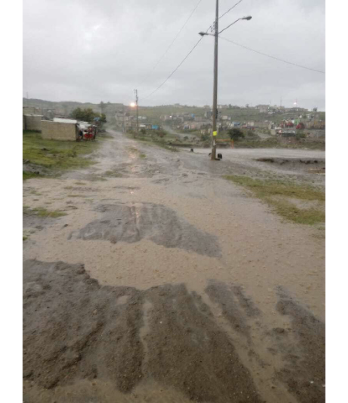 Después de una década, la única infraestructura presente en toda la colonia es la red eléctrica, de la cual, sin embargo, solo está en servicio el 60%. El agua potable la compran, ya que no se concluyeron las obras para la perforación de un pozo y una torre de agua para suministrar dicho recurso. Diariamente pasa un camión que vende el agua para uso doméstico: 1.000 m3 cuestan 18 pesos (0,9 usd); y también pasan camiones que venden el agua para beber en garrafones de 20 litros, con un costo de 10 pesos (0,5 usd). Respecto de la infraestructura para el drenaje, cuentan con el 50% de avance, pero no funciona, de manera que todas las viviendas tienen al interior fosas sépticas con capacidad de hasta 10 m3. No hay servicio de alcantarillado y las calles están sin pavimentar y sin banquetas, dificultando la movilidad principalmente durante los meses de junio a octubre, cuando la intensidad pluvial es mayor (Secretaría de Desarrollo Social [sedesol] & Gobierno del Municipio de Puebla, 2012) (Figura 2).