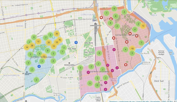 https://mapa.buenosaires.gob.ar/En términos territoriales, la Comuna 4 se encuentra en el pericentro sur, está dotada de una gran accesibilidad (proximidad a pie y buena oferta de transporte), buena infraestructura urbana (escuelas, hospitales, espacios verdes) y cuenta con áreas de alto valor patrimonial. Los atributos sociourbanos previos a las políticas de Distritos en los barrios pericentrales de la Comuna 4, combinados con los relativamente bajos precios del suelo e inmuebles, han hecho de los Distritos Tecnológico y de las Artes de la Comuna 4 áreas con gran potencial para explotar brechas de renta.