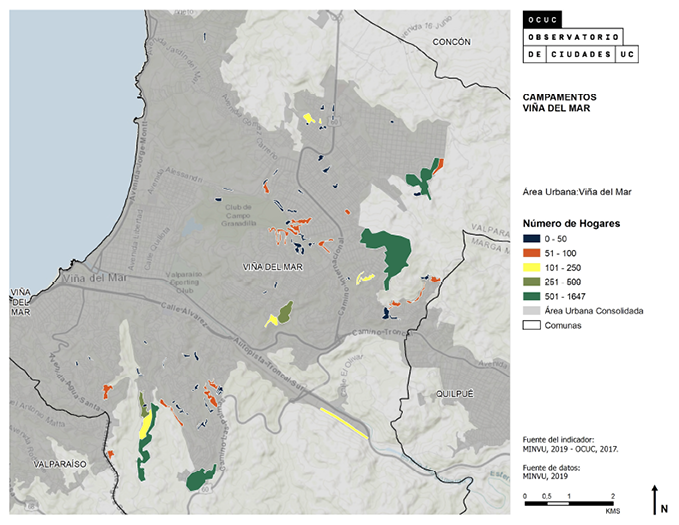 Los productos de la informalidad urbana tienen distintas denominaciones en cada uno de los países de América Latina en que ella ocurre, ya sean villas de emergencia, villas miseria o asentamientos en Argentina (Bettatis, 2009); tugurios, barriadas o asentamientos humanos en Perú (Torres & Ruiz-Tagle, 2019); favelas en Brasil (Maricato, 2003); tomas de terreno o campamentos en Chile. Todos dan cuenta de una particular forma de habitar “al margen de la ley”, incumpliendo los estándares y criterios establecidos por la legislación civil y urbanística (Fernandes, 2008). En general se da una enorme heterogeneidad en sus características entre los distintos países respecto de, por ejemplo, el tamaño de sus asentamientos: mientras en Brasil o Argentina se cuentan asentamientos de más de 10.000 familias, en Chile el asentamiento más grande tiene alrededor de 1600. De hecho, para que un asentamiento informal o campamento en Chile se considere oficialmente como asentamiento precario, se requiere “de 8 o más hogares que habitan en posesión irregular un terreno, con carencia de al menos 1 de los 3 servicios básicos (electricidad, agua potable y sistema de alcantarillado), y cuyas viviendas conforman una unidad socio territorial definida” (Ministerio de Vivienda y Urbanismo [MINVU], 2019a, diapo. 5). Por su parte, más de la mitad de los campamentos en Chile tiene menos de cien familias (TECHO-Chile, 2021).