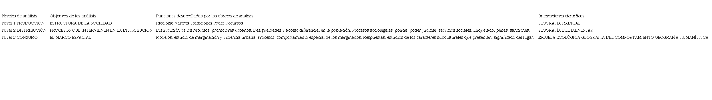 Concretamente en el campo de la geografía, coexisten en la actualidad variados enfoques para el estudio del crimen y la violencia urbana. Hernando Sanz (2006) los sistematiza (Tabla 1) a partir del esquema planteado por Herbert (1982) y Herbert y Johnson (1978).