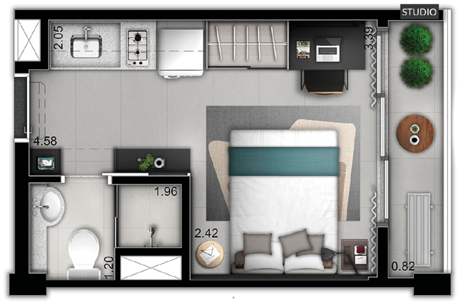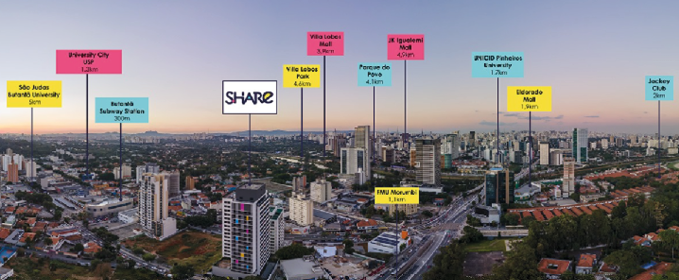 (III) O fundo Share surge para “tropicalizar um produto norte-americano”, como explicou o CEO da Mitre Realty ao podcast citado anteriormente. Embora seja tipificado como um Fundo de Investimento em Participações (FIP), e não como um FII, entende-se que a estratégia está alinhada aos demais fundos deste recorte empírico e traz contribuições à análise. Os ativos-alvo são edifícios operados dentro do sistema do consultor especializado Brasil Student Housing Empreendimentos e Participações Ltda. A plataforma tem como parceira a RedStone Residential, empresa com experiência na operação de residências estudantis nos EUA e no Canadá, e foca em aluguéis de unidades prontas para morar, com todas as contas inclusas, nos empreendimentos Share Consolação, nos arredores da Mackenzie, Share Butantã, próximo à USP, e Share Vila Mariana, ao lado da ESPM e do Centro Universitário Belas Artes. Segundo a revista Exame, “a Share captou R$ 214 milhões (≅ USD 40,5 milhões quando da publicação do artigo) em fundos de investimentos e participações e já tem contratado um ritmo de três inaugurações por ano até 2024” (Exame, 2021). Mais uma vez, o atributo localização está no cerne da estratégia de negócios do Fundo. Nesse caso, além dos atributos urbanos como metrô e parques, a principal universidade pública do estado de São Paulo também é um atributo precificado no serviço. No Share Butantã (Figura 8), os preços mensais variam de R$ 1.590 (≅ USD 305) em um estúdio compartilhado a R$ 2.790 (≅ USD 535) em um estúdio individual (em 12/09/2021).