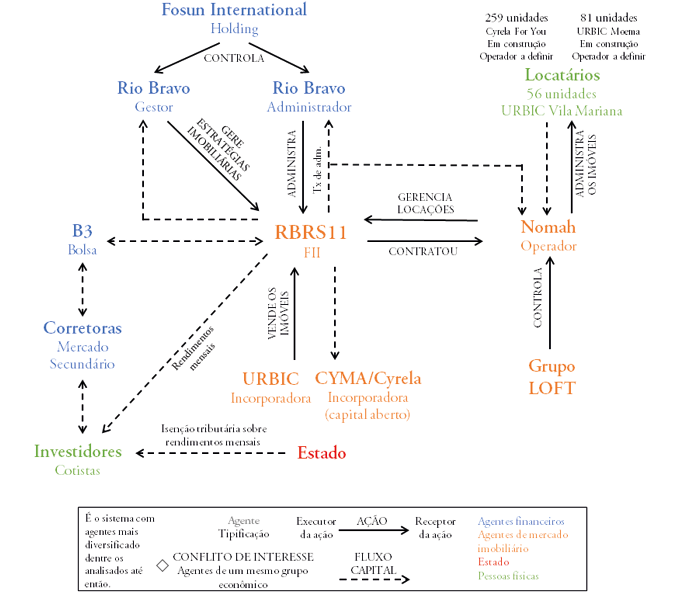 A contribuição empírica central deste artigo foi a sistematização de uma lista dos agentes financeiros e da construção civil envolvidos nessa nova fase da governança imobiliária que inovou a atuação dos FIIs no Brasil. Por meio de infográficos, foi oferecido um panorama sobre como agentes articulam-se e formam sistemas sociotécnicos de mercado imobiliário. A contribuição aprofunda estudos locais anteriores sobre financeirização do espaço urbano e dialoga com um estudo canadense a respeito da facilidade com que os FIIs se expandem por um território enquanto o mercado de aluguéis não é regulado pelo Estado, como é o caso do Brasil hoje.