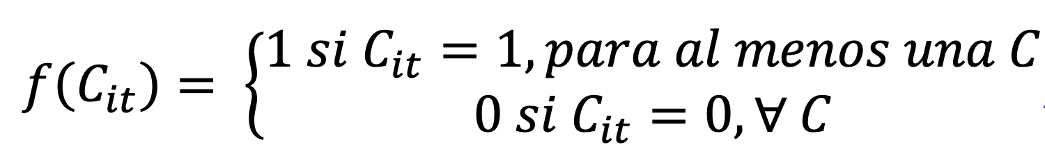 Donde Cit representa cada clínica para el individuo i en el día/hora t. Es igual a 1 cuando el individuo puede acceder a atención en al menos una localización –que implica el cumplimiento de las cinco condiciones mencionadas arriba– para el par día/hora. Si el individuo no puede acceder a atención en ninguna clínica para el par día/hora, esta función es igual a 0. Luego de describir la forma de cálculo de la medida, si bien sigue los criterios generales de las medidas basadas en oportunidades acumuladas, la naturaleza de la “oportunidad” que se acumula en este caso difiere de las oportunidades tradicionalmente contabilizadas. En otras palabras, no acumula oportunidades de forma directa, sino eventos de tiempo (o slots horarios) en los que al menos una oportunidad es alcanzada.