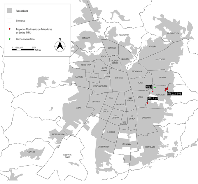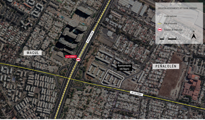 En la actualidad, el MPL tiene presencia en las regiones Metropolitana y de Antofagasta, está integrado por 2500 familias y cuenta con 11 proyectos habitacionales, en su mayoría localizados en la comuna de Peñalolén (Figura 1) (Muñoz & Carroza-Athens, 2022). El proyecto habitacional Inti Raymi o MPL7, ha sido catalogado como emblemático para el movimiento. Por una parte, es representativo de una de las reivindicaciones más importantes del MPL: la disputa por terrenos altamente rentables desde el punto de vista inmobiliario (Angelcos & Pérez, 2017), ya que se ubican contiguos a las redes de metro y de autopistas concesionadas, y a diversos servicios (Figura 2).