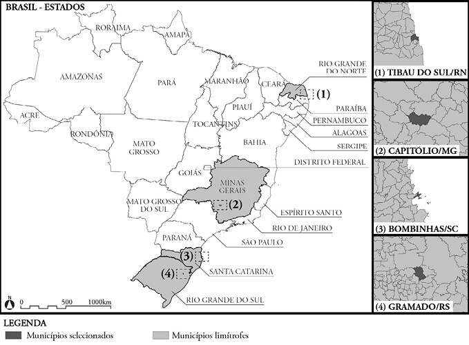 As quatro cidades têm um caráter turístico de lazer bem definido. Bombinhas e Tibau do Sul, localizadas nos estados de Santa Catarina e Rio Grande do Norte respectivamente são cidades litorâneas com turismo de lazer que explora sol e praia. Bombinhas tem 19.769 habitantes (IBGE, 2019). A cidade tem uma característica de abrigar casas de veraneio desde 1970, sendo que o estoque desse tipo de imóvel é maior do que de domicílios permanentes. Tibau do Sul tem 14.180 habitantes (IBGE, 2019) e é um destino de praia conhecido internacionalmente. Recebe em média 500 mil visitantes por ano do Brasil e do mundo, especialmente europeus (Silva, 2018). Desde a década de 1930 já havia uma tradição de segundas residências em Tibau do Sul e mesmo de hospedagem nas casas dos próprios moradores.
