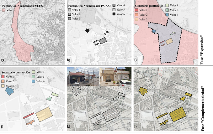 En nuestro análisis hemos partido del supuesto de establecer una puntuación normalizada en el VEUS y en Asertos-ASF, para unificarlos en una suma línea ponderada. El método de adición podría haber sido cualquier otro entre los habituales para establecer un ranking entre zonas. Los datos estadísticos del VEUS (las nueve variables que representan la dimensión residencial, económica y demográfica), se han adaptado a una escala común y los datos cualitativos de Asertos-ASF (valoración de trabajo de campo), se han categorizado y, posteriormente, transformado para poder integrarse con los anteriores. Finalmente se establece una prelación del 1 al 6, siendo las zonas con mayor puntuación las más vulnerables.