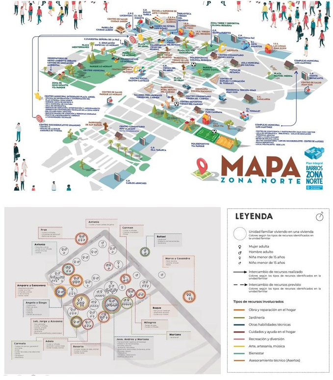 Otra iniciativa de interés en Alicante es la desarrollada a través del Proyecto Asertos-ASF (Arquitectos Sin Fronteras [ASF], 2022). Se trata de un proyecto de desarrollo local participativo para acompañar a los residentes en el barrio del Cementerio en la regeneración de su entorno urbano y promoción de la mejora sostenible de sus condiciones de vida. Adopta un enfoque socioespacial que le permite la creación de un plan de acción evolutivo, con líneas directrices e hitos definidos a corto, medio y largo plazo.