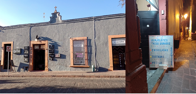 Caminar por ese tramo de la misma calle 5 de Mayo tiene otros sonidos y paisajes en comparación con el ámbito antes descrito. Aquí de pronto se escucha el sonido de la lavadora, la música de una estación de radio, las vecinas regando las macetas y limpiando las banquetas. Entre las puertas que se abren y rechinan, emerge el “buenos días”, y la presencia de personas de la tercera edad con su bolsa para hacer la compra en el mercado de La Cruz se hace notar. Aquí ya no hay un comercio tras otro, no hay oficinas de turismo, no hay estímulos institucionales para el entretenimiento. En este punto radican las viviendas donde moran las personas, sus viejos vehículos estacionados frente a sus casas, y en alguna que otra fachada podemos encontrar mantas y carteles pidiendo a la autoridad gubernamental No más antros, consigna que pugnaba por la restricción de permisos de lugares de consumo de alcohol. En las esquinas de este tramo de la calle vemos las huellas de las bolsas de basura que no se alcanzaron a ir y en los postes de luz, pequeños letreros de oficios tradicionales ligados al mantenimiento y servicios del hogar.