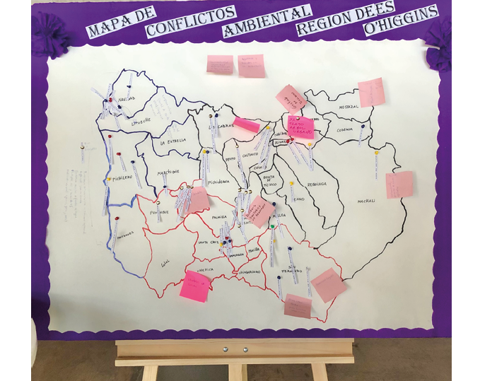Luego, en marzo de 2019, fue organizado el primer encuentro regional de estas personas en la comuna de Las Cabras de la provincia de Cachapoal. Este lugar es conocido por la activa lucha social desplegada en torno a la protección del bosque nativo, el cual se veía amenazado por los intereses de la empresa agrícola Tralcán y la acción negligente de la Corporación Nacional Forestal (CONAF) (El Mostrador, 2020). Nuevamente, la instancia sostenía la intención de trabajar en la creación de una identidad común de carácter regional y ambiental. En esta ocasión, se buscó abordar desde un mismo marco las situaciones de tala de bosque nativo con fines agrícolas, tal como ocurre en varias comunas de la región. Los primeros diálogos estuvieron marcados precisamente por la percepción de injusticia ante los agravios de este sector productivo, aunque ampliable a la minería, energía e infraestructura. La percepción se veía agravada por las apreciaciones de un Estado ausente y permisivo. Como resultado, percibían que debían estar organizados entre las comunidades frente a adversarios comunes poderosos, sobre la base de los principios de unidad en la acción, solidaridad y cooperación (taller).