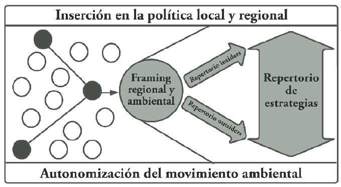 Por lo tanto, un factor crucial para el inicio de la articulación de la movilización ambiental en la región fue el proceso de creación de un marco regional, identificando la situación de injusticia y de vulneración de derechos humanos ambientales en la que se encontraban (enmarcamiento diagnóstico), la propuesta de incipientes líneas de acción individuales y colectivas basadas en la unidad y solidaridad (enmarcamiento pronóstico) y la generación de ideas organizadoras convincentes que incentivaran a la acción colectiva como el mejor camino para alcanzar con éxito los resultados (enmarcamiento motivacional).