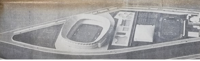 Por otro lado, en marzo de 1971, en la prefectura y ciudad de Sorocaba se apresuraba la construcción de su estadio de fútbol en el barrio Jardim Santa Rosalia. El mismo local fue erigido en Centro Comunitario de Integración. La obra inicial consistió en un estadio de fútbol con todas las comodidades necesarias, como iluminación y pista de atletismo. Posteriormente, se contempló la construcción de un gimnasio, canchas para básquetbol y vóleibol, además de una piscina. Para entonces, por la falta de cemento, las obras del estadio se encontraban en riesgo de paralización. Para enfrentar esta situación, José Ermirio de Morais Filho, presidente de la Federación Paulista de Fútbol, uno de los dos directores de Votorantim, además de los dirigentes del EC [Esporte Clube] São Bento, colaboraron con la prefectura, consiguiendo una cuota extra de 300 sacos de cemento diario. Gracias a este fortalecimiento, las obras del estadio pudieron ser aceleradas y pudo celebrarse un segundo contrato con la empresa constructora, por lo que las obras lograron estar concluidas en noviembre, y la inauguración pudo hacerse en diciembre. El Estadio del Centro Comunitario de Integración de Sorocaba contempló, inicialmente, capacidad para 35 mil personas. El proyecto, en tanto, previó acomodaciones para hasta 65 mil personas cuando estuviera terminado (Figura 6). Para los 35 mil lugares, las obras estuvieron presupuestadas en 450 mil cruzeiros. Emidio Cagalí, presidente del EC São Bento, afirmaba que el club deportivo recaudaba un máximo de 41 mil cruzeiros, pero con el futuro estadio de la ciudad totalmente terminado, la recaudación podría alcanzar hasta 150 mil cruzeiros, lo que colocaría al club deportivo en “una situación financiera de las mejores” (Folha de São Paulo, n° 15.247, 15 de marzo de 1971).