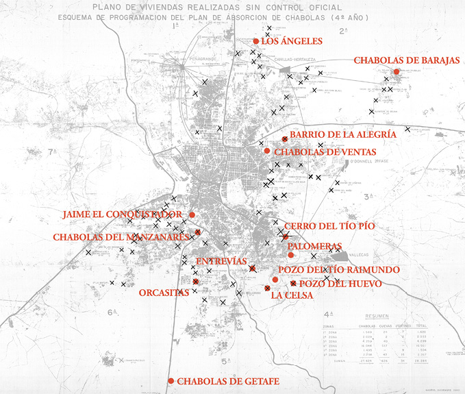A pesar de las cifras récord de producción de vivienda social, las primeras estimaciones sistemáticas sobre el déficit habitacional en la ciudad, llevadas a cabo de cara al tercer Plan Nacional de Vivienda, mostraron un déficit local de 96.000 viviendas, un 10% del de toda España (Valenzuela Rubio, 1974). La política habitacional del régimen franquista se estaba mostrando claramente insuficiente para contener el fenómeno. Además, frente a periodos precedentes, la situación financiera y la fortaleza del sector inmobiliario habían convertido el chabolismo en un objeto antieconómico, freno al desarrollo de la pujante actividad constructora profesional. En dicho contexto, este tipo de barrios, pobres y de baja densidad, eran espacios ideales para la renovación urbana, tal y como indicaba la literatura editada por el recién aprobado Ministerio de la Vivienda (Guirado, 1961). Como consecuencia de todo lo anterior, el régimen lanzó tres medidas de corto plazo con el fin de controlar el desarrollo de áreas precarias en la periferia de Madrid.