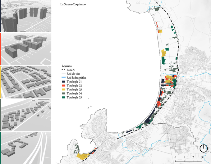 Los patrones espaciales en las regiones turísticas de La Serena-Coquimbo indican la existencia de cinco tipologías edilicias, especificadas abajo y demostradas en la Figura 6.