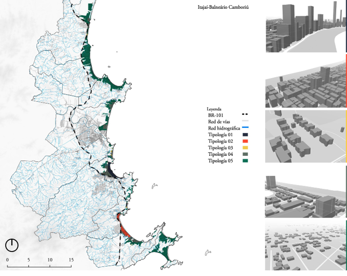 En una realidad donde los eventos sísmicos y los tsunamis son improbables, como en la conurbación de Itajaí-Balneário Camboriú, las tipologías que más impactan negativamente el espacio urbano son la T01 y T02, que corresponden al 14,20 % de toda la urbanización turística. La proximidad de torres de hasta más de 80 pisos frente al mar, sumada a una orientación solar desfavorable, reduce el tiempo de incidencia solar en la franja de arena, trayendo pérdidas económicas y de confort en las playas. El mejor ejemplo se encuentra en Balneário Camboriú, donde el Plan Ordenador no impone límites de altura para los edificios.