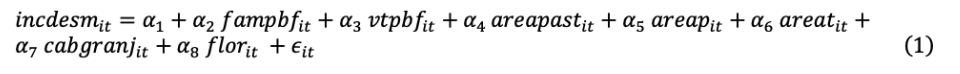 Os termos de erro ϵit e ηit são adicionados para abranger a aleatoriedade e os efeitos não explicados pelas variáveis no modelo. Os subscritos i e t referem-se, respectivamente, aos municípios e aos anos de observação.