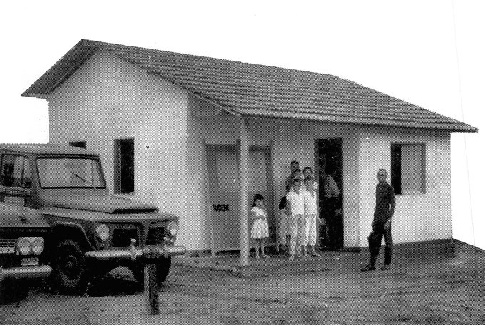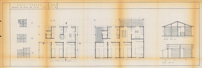 A conexão CINVA-SUDENE se materializou, então, na realização da sexta edição do Curso Regional de Habitação Rural em Escada, cidade do interior de Pernambuco, aproximando fisicamente os três atores supracitados em território brasileiro. Durante o evento, Hebe Gonçalves, como professora da ESS-PE e assessora da SUDENE, ministrou aulas em “Organização e desenvolvimento da comunidade”; Carlos Carneiro, como Diretor do Departamento de Construções do SSCM, ministrou aulas na temática do “Financiamento da habitação rural”; Gerson Sampaio, finalmente, identificado como membro efetivo da SUDENE e locado em sua Divisão de Habitação, se debruçou sobre temas em “Orçamento, análise de custos, controle e supervisão da construção da habitação rural”. Mantendo o padrão pedagógico característico dos cursos de extensão oferecidos pelo CINVA, a multiescalaridade e a interdisciplinaridade regeram seu programa de atividades, dividido entre aulas teóricas e experimentação prática. Ele foi finalizado com o desenvolvimento de um projeto de casa experimental modular e expansível em taipa-de-mão (CINVA & SUDENE, 1966; Carvalho et al., 2023) (Figuras 4 e 5).