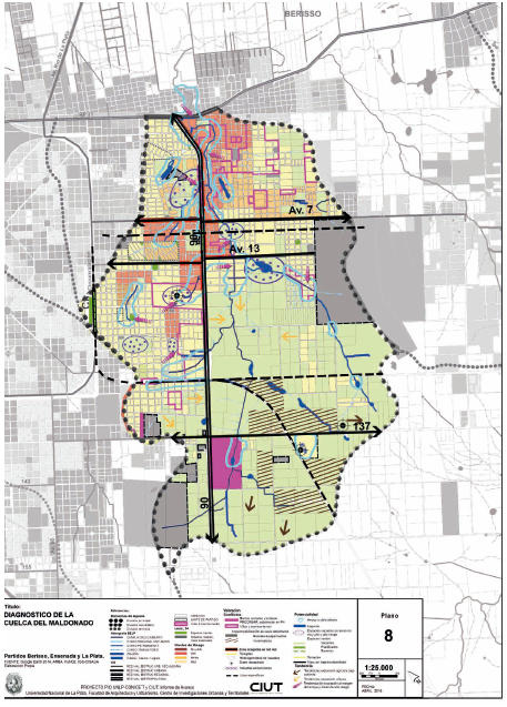 En este contexto, se estructuró un grupo de trabajo orientado a formalizar la identificación de estrategias de intervención a escala territorial para el fortalecimiento de la resiliencia urbana en el área de análisis, teniendo como objeto de estudio la Cuenca del Arroyo Maldonado. La misma se halla caracterizada por zonas urbanas, periurbanas y rurales que la convierten en un área con usos heterogéneos y diferentes grados de criticidad; así como áreas de oportunidad para la puesta a prueba de recomendaciones que fortalezcan el uso sustentable del territorio.