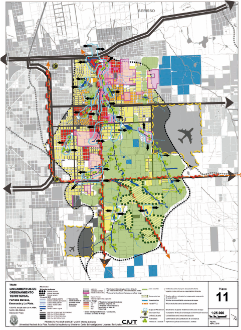 Resumen: El presente trabajo parte de comprender que los conflictos hídricos en torno a las inundaciones urbanas surgen como producto de una multiplicidad de causas, si bien responden preponderantemente a los efectos del cambio climático. El estudio se enmarca en una línea de investigación en desarrollo que analiza la problemática de las inundaciones urbanas en el Gran La Plata. Se trabajó en este contexto a dos escalas: la primera incorporó los tres partidos del GLP. La segunda, las cuencas de los arroyos del Gato y Maldonado en la ciudad de La Plata. El objetivo consiste en formalizar las estrategias de intervención a escala territorial para el fortalecimiento de la resiliencia urbana teniendo como objeto de estudio la Cuenca del Arroyo Maldonado. La estrategia metodológica se basó en la elaboración de un diagnóstico del área, reconociendo debilidades y fortalezas para determinar estrategias de intervención (lineamientos), que contribuyan a la mitigación del riesgo por inundación, incrementando su capacidad de resiliencia y aportando a la construcción del hábitat sustentable. La herramienta utilizada para el procesamiento, análisis y construcción de datos fue el Sistema de Información Geográfica (GIS). Los resultados de la investigación son estrategias generales (a diversas áreas de vulnerabilidad), estrategias específicas para el caso de estudio (en relación a la dimensión físico-ambiental considerando la normativa vigente, usos del suelo y accesibilidad) y la construcción de una cartografía (Mapa de Diagnóstico y Mapa de Lineamientos).
