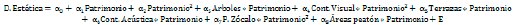 Para la segunda etapa, se realiza un segundo modelo no lineal con la variable “dimensión estética” como variable a explicar por el patrimonio edificado y la interacción de este con otras variables de la escena, conforme al siguiente modelo estadístico: