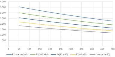 El comportamiento de los precios en UF con respecto a la distancia al metro se observa algo confuso con precios que crecen y decrecen, sin embargo, se puede identificar claramente que las viviendas ubicadas de forma más cercana a las estaciones de metro tienen precios más altos. Al analizar el precio por metro cuadrado se ve que estos aumentan conforme se acerca a la estación de metro más cercana, dado que el tramo que comprende las viviendas ubicadas entre 200 y 300 metros tiene los precios más altos y que estos decrecen en los tramos siguientes. En el Figura 9, se puede observar la tendencia de los precios con respecto a la distancia del metro.