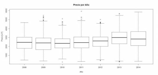 Para el caso específico de la línea 3 del metro, Rivas (2015) demostró un aumento evidente, pero no constante en el valor de los departamentos nuevos en el sector de Irarrázaval de esta línea (Figura 2 y Figura 3), donde se demuestra un cambio significativo de este valor asociado a la estación. En ese sentido, ya en el análisis de la línea 4 (Aguirre y Léon 2008), dicho valor se había establecido con diferencias evidentes en el impacto según el sector y tipología del metro (subterráneo, en trinchera o en viaducto), con lo cual, para el caso del metro de Santiago, el análisis hedónico, se observa como el mejor método de análisis para establecer este aumento de plusvalía. En síntesis, esta técnica, permitirá estimar el efecto del aumento del valor, expresado en precio, ante las mejoras de la accesibilidad producto del metro.
