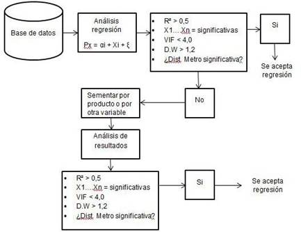 Los bienes inmuebles son bienes complejos, contemplan muchas variables, y las estrategias de precio tienden a compensar las malas ubicaciones con atributos propios del edificio. Ello genera una correlación entre estos atributos y los atributos de ubicación que vuelve complejo el análisis econométrico a través de una regresión lineal simple. Por tanto, y puesto que el objetivo final de esta investigación consiste en demostrar el impacto del metro en la diferencia del precio de los bienes inmuebles, se considera que la forma más razonable y matemáticamente correcta de llevarlo a cabo es establecer las diferencias entre los precios, según la distancia al metro, considerándolos como conjuntos similares. Esta situación es confirmada por la prueba t realizada.