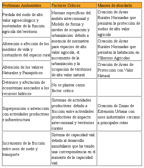 The regional planning at a local area must try to generate, from current instruments, along with professional and political will, use compatibilization criteria for territories with high environmental value and multiple potential uses. Urban planning is currently tied into traditional approaches and must move towards an approach which integrates different players and that is flexible, reflective and open.