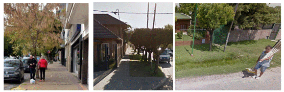Regarding this cross-section, the street segments outside the urban area are excluded, and the streets are segmented into 100-meter sections. Then, the georeferenced survey is made using the Google Street View tool, which has images updated between 2014 and 2018. This survey includes: