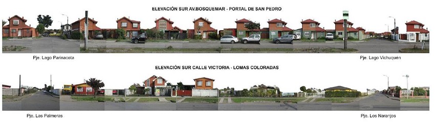 Lomas Coloradas se ubica al oriente de la ruta 160, y corresponde a un barrio tradicional originado en la década de 1970 tras la construcción del matadero Socoagro. Su trazado es de tipo ortogonal con pasajes abiertos, predomina la tipología de vivienda autoconstruida, alcanza una densidad poblacional de 43.3 hab/ha (INE, 2018) y cuenta con equipamientos de diverso tipo en el 25% de sus predios.