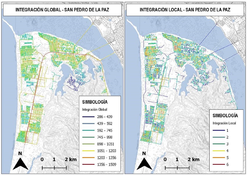 Tercero, los procesos de liberalización de suelo, periurbanización y su interrelación con la infraestructura vial, donde a nivel residencial predominan las tipologías arborescentes, fomentan un modelo difuso poco sostenible que demanda mayor cantidad de recursos sin satisfacer a una alta densidad de habitantes. Esta investigación da pie para estudios futuros que consideren la trama peatonal en el cálculo de integración, el análisis de visibilidad del espacio y complementen con variables desagregadas a nivel socioeconómico de los barrios. De esta forma, en un futuro los resultados pueden ser implementados para la formulación de políticas públicas urbanas, integrando el rol del entorno construido en la formación de barrios integrados desde un enfoque dinámico a partir de la movilidad.