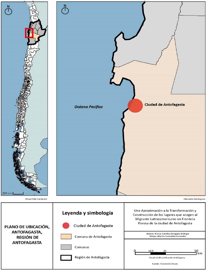 El presente artículo es parte de la tesis doctoral “Una aproximación a la Transformación y Construcción de los Espacios que acogen al Migrante Latinoamericano en Frontera Porosa de la ciudad de Antofagasta” desarrollada en el programa de Doctorado en Arquitectura y Urbanismo de la Facultad de Arquitectura, Construcción y Diseño de la Universidad del Bío- Bío. Las entrevistas realizadas tanto a los migrantes como a los actores claves son parte del proyecto Fondecyt N°1171722: “Geografías de acceso a la vivienda para inmigrantes latinoamericanos y del Caribe: Explorando nuevos fenómenos socioespaciales en ciudades del norte chileno”.