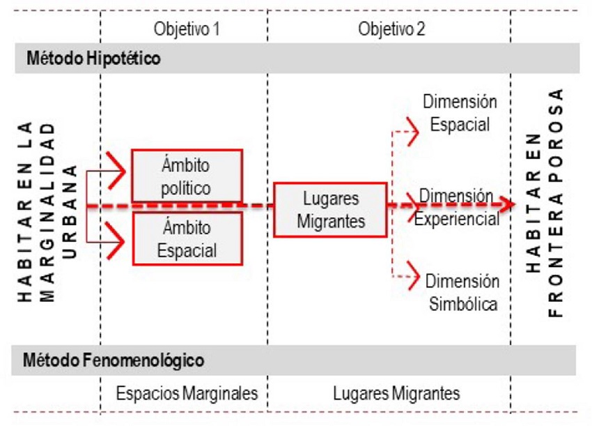 La metodología de investigación combina el método hipotético, el cual propone una pregunta y una hipótesis que derivan del marco teórico (Hurtado, 2000), y el método fenomenológico, que no presupone nada antes de hacer el trabajo de campo (Husserl, 1982). El propósito de la metodología es acercarse a la problemática urbana desde la interpretación que hacen los migrantes de su realidad, entrelazando la discusión teórica con el trabajo de campo realizado.