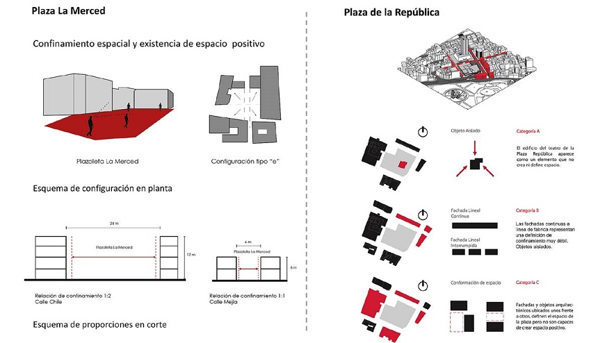 Este trabajo presenta un estudio de dos espacios públicos en la ciudad de Quito-Ecuador: una plaza en el Centro Histórico con un esquema tradicional: Plaza “La Merced”; y un segundo espacio público con un esquema funcionalista: Plaza de “La República”. La selección responde a la definición de espacios urbanos en términos de tipo-morfología; es decir, un espacio tradicional y otro funcionalista (Carmona, 2010, p.77).