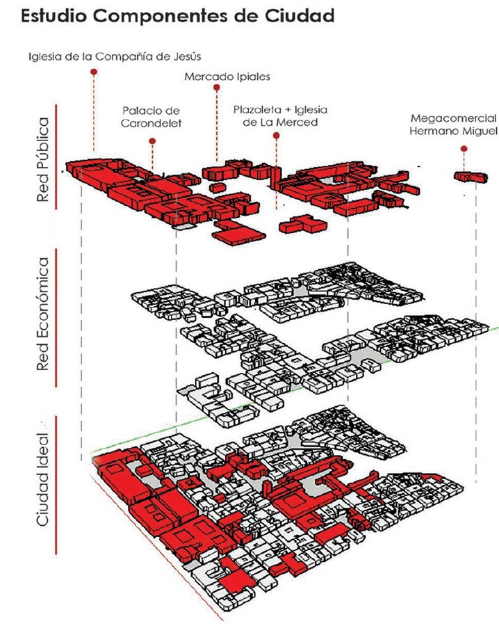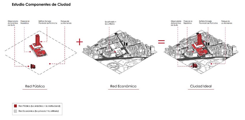 Modelo. Hablar de un modelo de plaza tiene una particularidad, ya que se configura en relación con un carácter topológico, con mayor flexibilidad al lugar, que opera en el vacío (Lynch, 1998). En Quito, a excepción de algunas plazas, fruto del emplazamiento del damero colonial, no se encuentran “tipos” morfológicos reproducidos rigurosamente, sino que espacios que se adaptan a la topografía o a situaciones heterogéneas, provocando un catálogo de resultados disímiles.