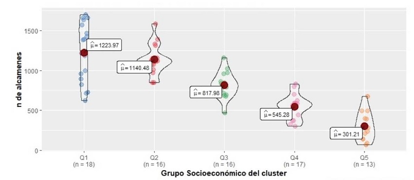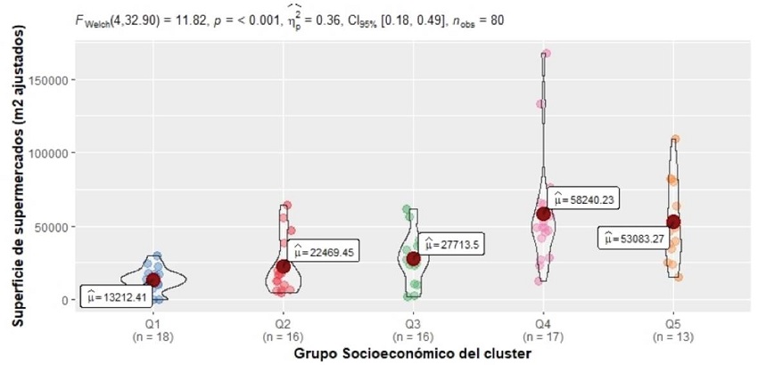 La distribución geográfica de los clústeres de oferta alimentaria (Figura 12) apunta a una relación entre la distribución socioeconómica y el tipo de oferta predominante.