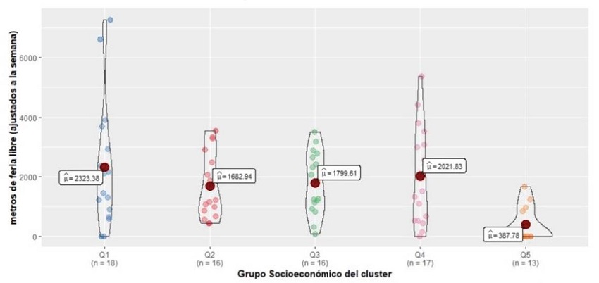 Finalmente, la única tendencia visible en la disposición de las ferias libres es su notoria disminución en Q5, el de mayores ingresos.