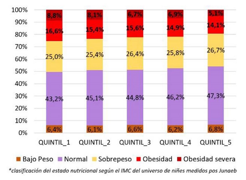 La situación nutricional en países como Chile, que han experimentado procesos de crecimiento económico y transición alimentaria veloces, son de particular preocupación (Popkin et al., 2006). Esta inequidad en la distribución global de la malnutrición por exceso se replica a nivel intranacional. Desde las ciencias biomédicas y sociales, se ha observado una correlación inversa entre nivel socioeconómico y obesidad infantil, es decir, que niñas y niños provenientes de familias con menos recursos socioeconómicos tienen mayores probabilidades de estar en las categorías de sobrepeso (Salinas & Goldsmith Weil, 2020).