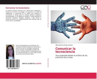 Este libro publicado en noviembre del 2007 por la editorial académica española (eae), trata sobre la comunicación pública de la ciencia, la tecnología y la innovación (en adelante tecnociencia[1]) vista desde el análisis sus prácticas discursivas. La selección de esta temática es un intento por contribuir desde el análisis del discurso a la construcción de una teoría de la comunicación tecno-científica pública que sistematice conceptos, elementos, operaciones, relaciones, estrategias y modelos vinculados con la producción, comprensión e interpretación de las prácticas de la investigación científica y de su impacto social.