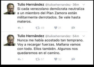 Caso dos: El 18 de abril de 2017, un recalcitrante opositor al gobierno de Venezuela publica una serie de tuiteres. Todos enmarcados en que el gobierno y sus partidarios son una plaga y que han acabado con el país. Las publicaciones se deben a que, al otro día, marchas del gobierno recorrerán las calles de Caracas. Uno de los tuiteres dice: «Se vale hasta materos». Al día siguiente, una enfermera se dirige a su trabajo. De pronto, se derrumba. La sangre acuna su cabeza. Junto a ella, una botella con agua congelada. La mujer muere a los pocos días. Según las críticas, él había puesto la idea en la mente de otro. La empresa donde trabaja lo despide por incitar al odio. El opositor huye del país.