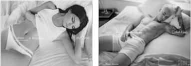 Sin ofrecer un recorrido exhaustivo de los elementos significantes que evidencia la violencia semiótica de estas dos imágenes, me conformaré con solo atender a uno de ellos: la posición de las manos. La mano derecha, en ambos sujetos, se ubica y reposa en los lugares corporales asociados (en extrema sexualización) con la marca sociocultural de lo «masculino» y lo «femenino»: pene y senos; y llevándolo más allá: hacia lo «macho» y lo «hembra». Es así como ambas manos se convierten en señalizadores territoriales con los cuales se ofrece una orientación visual específica: hacia dónde se quiere se precise la mirada y se estimule la imaginación de quien observa. El estado posorgásmico en que reposan los cuerpos intensifica más la erotización extrema, en una genitalización extensa. Sobre todo al hacerlos posar en sábanas blancas, en la conexión ideacional con una descarga espermática.