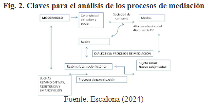 Finalmente, en Latinoamérica los procesos sociales que impulsan la participación social y comunitaria generan relaciones intersubjetivas y nuevas formas de mediación, dadas por una dialéctica entre la razón instrumental y la razón crítica. En estas se encuentran presentes instancias de mediación de un discurso mediático que buscan enajenar al sujeto y los diferentes mecanismos de resistencia que se construyen, en lo cotidiano, desde los diversos ámbitos del activismo social, que impactan en la criticidad y los usos de los discursos.