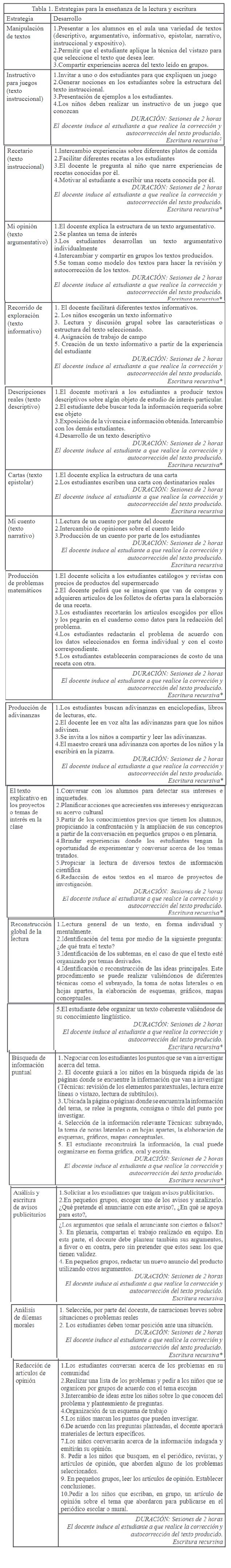 Propuesta de un modelo de estrategias para la enseñanza de la lectura y escritura