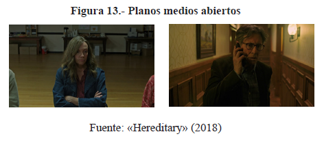 Los planos medios, que encuadran a los personajes desde la cintura o el pecho hacia arriba, se emplean con frecuencia en las interacciones familiares cotidianas. Sin embargo, lo interesante en «Hereditary» (2018) es cómo estos planos no sólo funcionan como un recurso narrativo convencional, sino que también transmiten una creciente sensación de incomodidad. Este tipo de plano, a menudo, se siente claustrofóbico, ya que, a pesar de enmarcar solo una porción del entorno, la atmósfera cargada de la escena hace que el espacio parezca comprimirse alrededor de los personajes. Es particularmente notable en escenas de discusión, donde los planos medios refuerzan el carácter asfixiante de las dinámicas familiares.