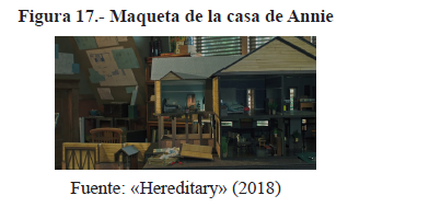 Las maquetas como reflejo del destino y el control: Uno de los principales leit motiv de «Hereditary» (2018) es la presencia de las miniaturas y maquetas que Annie, la protagonista, construye. Estas miniaturas representan una reflexión semiótica sobre el control y el destino. El mundo en miniatura es una metáfora visual del universo determinista en el que los personajes parecen estar atrapados. Al igual que las figuras en las maquetas de Annie, los personajes en la película están siendo manipulados por fuerzas superiores, simbolizadas por el culto y la influencia demoníaca. La miniatura funciona como un comentario sobre la incapacidad de los personajes de controlar sus propias vidas, subrayando el tema del destino ineludible.