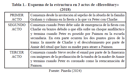 El estilo de narración en «Hereditary» (2018) es del tipo fuerte, presentando la siguiente estructura en tres actos: